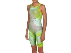 Der Wettkampfanzug Limited Edition – Powerskin R-EVO One ist der Wettkampf-Schwimmanzug für Mädchen mit modernstem Design, erwiesenen Ergebnissen und hervorragender Leistung für Mädchen. „One“ steht für eine innovative Konstruktion aus nur einem Stück Stoff, das sich gleichmäßig wie eine zweite Haut dehnt und komprimiert. Dieser Wettkampf-Schwimmanzug für Mädchen mit nur einer einzigen Verbundnaht auf der Rückseite sorgt für verbesserte Bewegungsfreiheit und Komfort rundum. Das ultra-leichte Material absorbiert weniger Wasser und vermindert den Wasserwiderstand, wodurch Ihr Gleitverhalten und die Effizienz beim Schwimmen verbessert werden. Dieses Modell, mit unterstützenden Racerback-Trägern und einem ausgeschnittenen Rücken, reicht von den Schultern bis an die Knie. Außerdem ist er einfach an-und auszuziehen. Mit seinem essentiellen Design ist Powerskin R-EVO One die einfachste Möglichkeit, alle Vorteile eines Hightech-Schwimmanzugs zu erleben.
