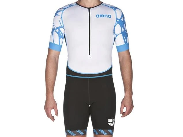 Arena Powerskin ST Aero Men Trisuit Einteiler Kurzarm, Front Zipper – S black/white/aqua blue